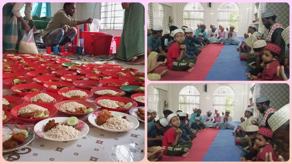 ইফতারের পূর্বে দেশ, জাতি এবং সমগ্র মুসলিম উম্মাহর শান্তি, সমৃদ্ধি ও কল্যাণ কামনা করে বিশেষ দোয়া ও মোনাজাত করা হয়। পরে উপস্থিত মুসল্লিয়ানে কেরাম ও অতিথিদের সঙ্গে নিয়ে একসাথে ইফতার করা হয়।