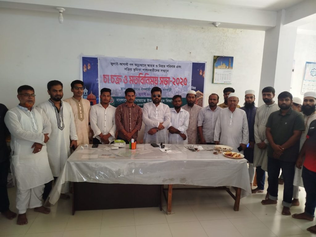 জুলাই -আগস্ট গন অভ্যুত্থানে আহত ও নিহত পরিবার এবং সক্রিয় ভূমিকা পালনকারীদের সম্মানে চা চক্র ও মতবিনিময় সভা-২০২৫ অনুষ্ঠিত হয়েছে বাংলাদেশ জামায়াতে ইসলামীর ধনবাড়ী উপজেলা শাখার কার্যালয়ে মঙ্গলবার (০১ জুলাই) বিকেলে ।