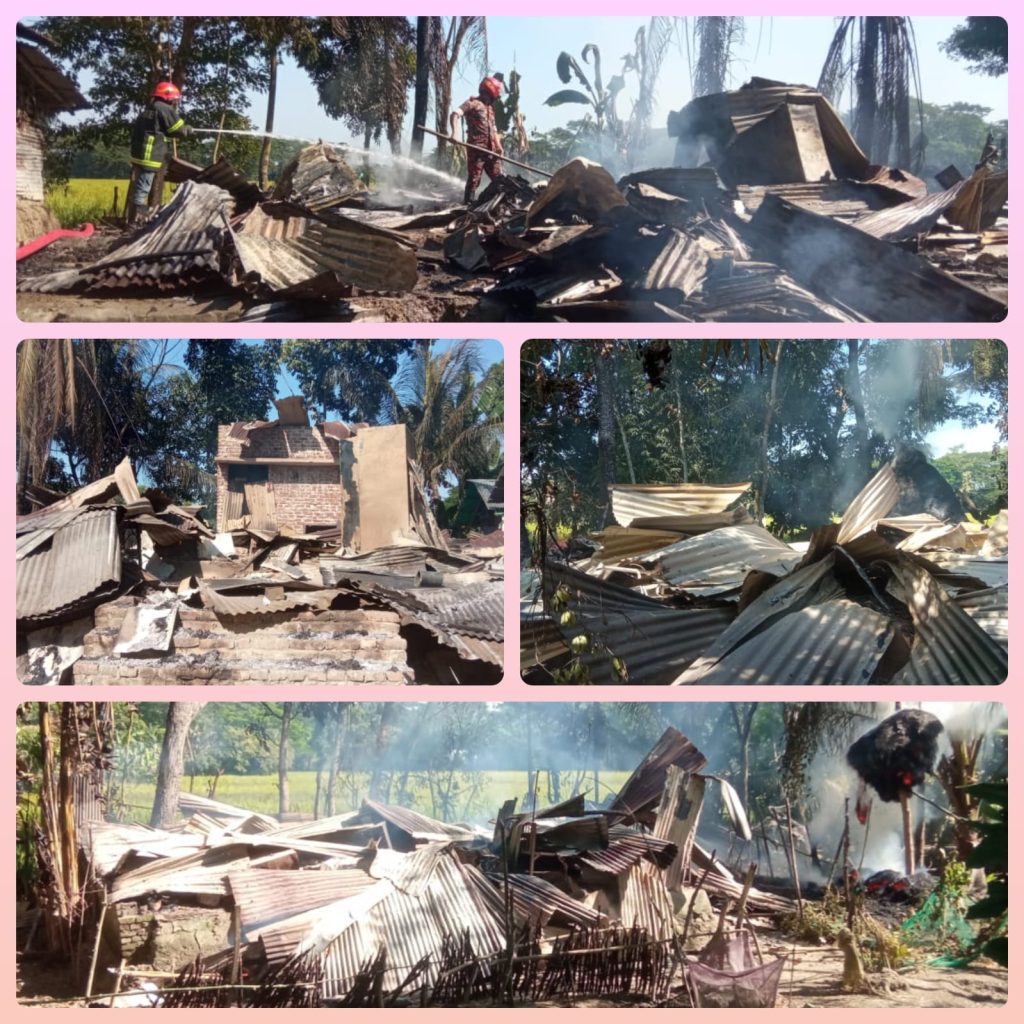 অপরদিকে মামলার তিন দিন পরে আজ সকাল ১১টার দিকে আসামী দ্বয়ের ঘর ভাংচুর করে আগুন লাগানো হয় ।