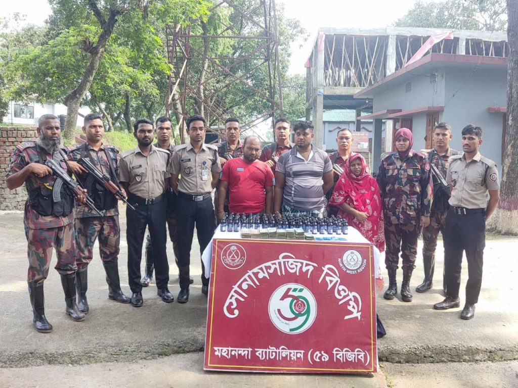 বিজিবি এবং চাঁপাইনবাবগঞ্জ মাদকদ্রব্য নিয়ন্ত্রণ অধিদপ্তরের সমন্বয়ে যৌথ অভিযান পরিচালনা করা হয়। উক্ত অভিযানে নিম্নবর্ণিত ০৩ জন আসামীকে ৮৯ বোতল ভারতীয় ফেন্সিডিল, ৫৬৫ পিস ইয়াবা এবং নগদ ১১,২৮,০০০.০০ টাকাসহ আটক করা হয়। আসামীসহ জব্দকৃত মাদকদ্রব্য এবং নগদ টাকার ব্যাপারে আইনানুগ ব্যবস্থা গ্রহণের কার্যক্রম প্রক্রিয়াধীন।