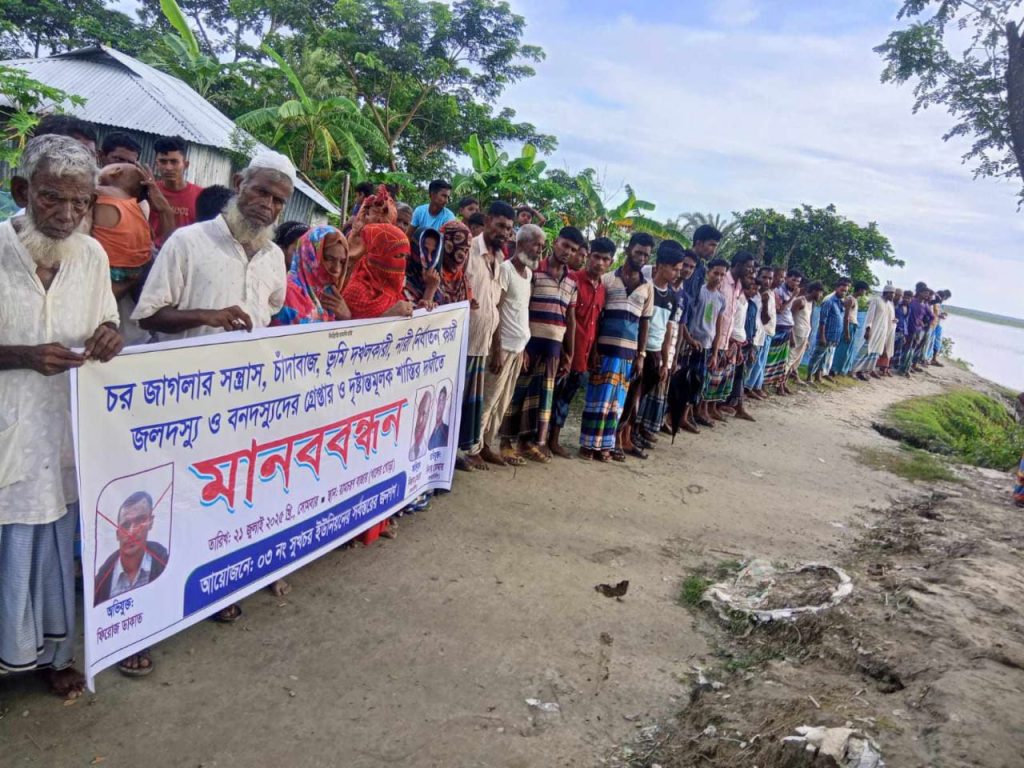 স্থানীয়দের ভাষ্যমতে এই চক্রটি প্রতিনিয়ত নতুন চর এলাকায় সাধারণ মানুষকে প্রভোলনে ফেলে অর্থ আদায় করে। জমি বরাদ্দের নামে প্রাপ্ত অর্থের কোন রশিদ বা প্রমাণ পত্র প্রদান করা হয় না। কেউ টাকা দিতে অস্বীকার করলে তাকে হুমকি – ধামকি ও সামাজিক ভাবে হেয় করার ঘটনা ও ঘটেছে। একজন ভুক্তভোগী নাম প্রকাশ না করার শর্তে বলেন, আমাদের কে বলা হয়েছে এই চর সরকারি হবে না, আমরা যার আগে টাকা নিব, সে আগে দখল নিতে পারবে। আমরা গরিব মানুষ, ভেবেছি হয়তো কিছু জমি পাবো তাই টাকা দিয়েছি।